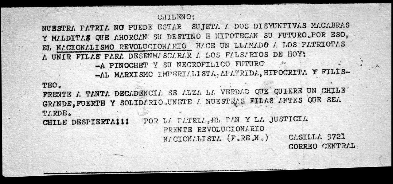 Movimiento derivado del Frente Estudiantil Nacionalista [F.E.N.]. Agrupación de corte «Nacionalismo Revolucionario», férreos opositores al Gobierno de Augusto Pinochet.