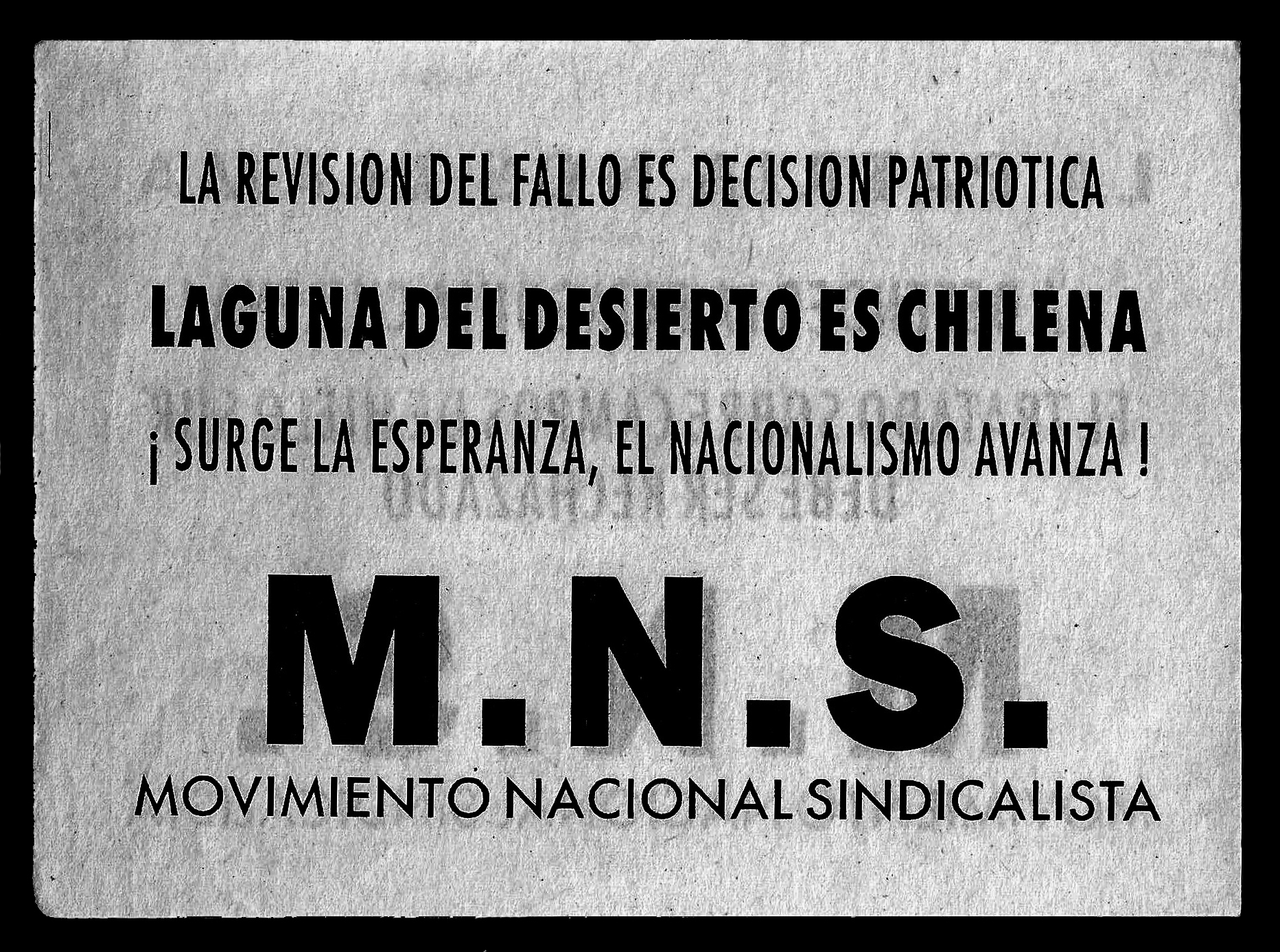 A inicios de la década de los 90, el M.[R]N.S. observa cómo el gobierno bajo la dirección de la Concertación cede ante los arbitrajes imperialistas de los Estados Unidos, socavando la soberanía nacional y permitiendo la ocupación expansionista de la Laguna del Desierto por Argentina, lo que junto a otros grupos y particulares impulsa la campaña ‘La Patria Nos Llama’.